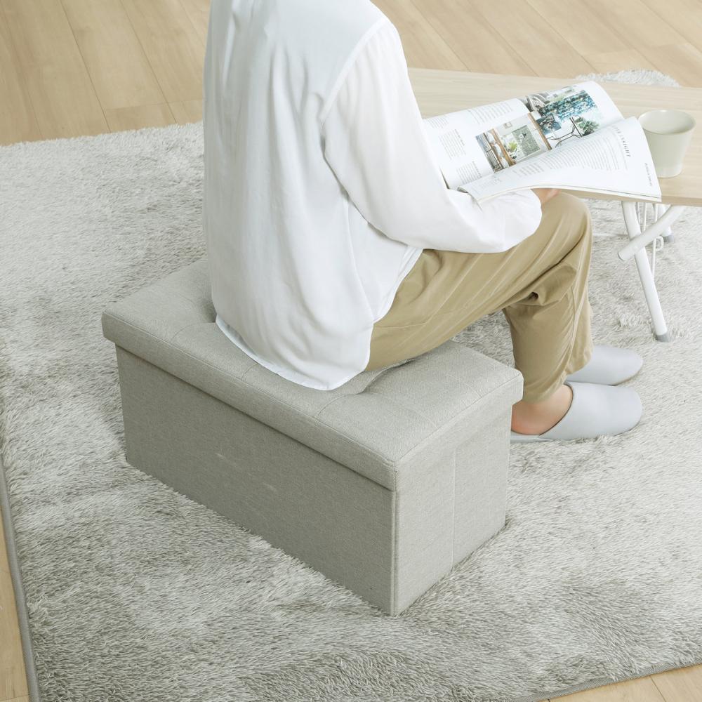 ■座面がフタになっていて、スツール内に小物を収納することができます。本やお子様のおもちゃ、いざというときの防災グッズなどを気軽に収納。
