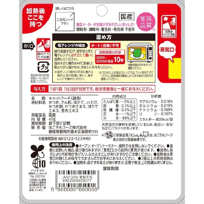 原材料・成分:かつお、でん粉、ほたて、小えび、かつお節、かつおエキス、ほたてエキス、昆布エキス