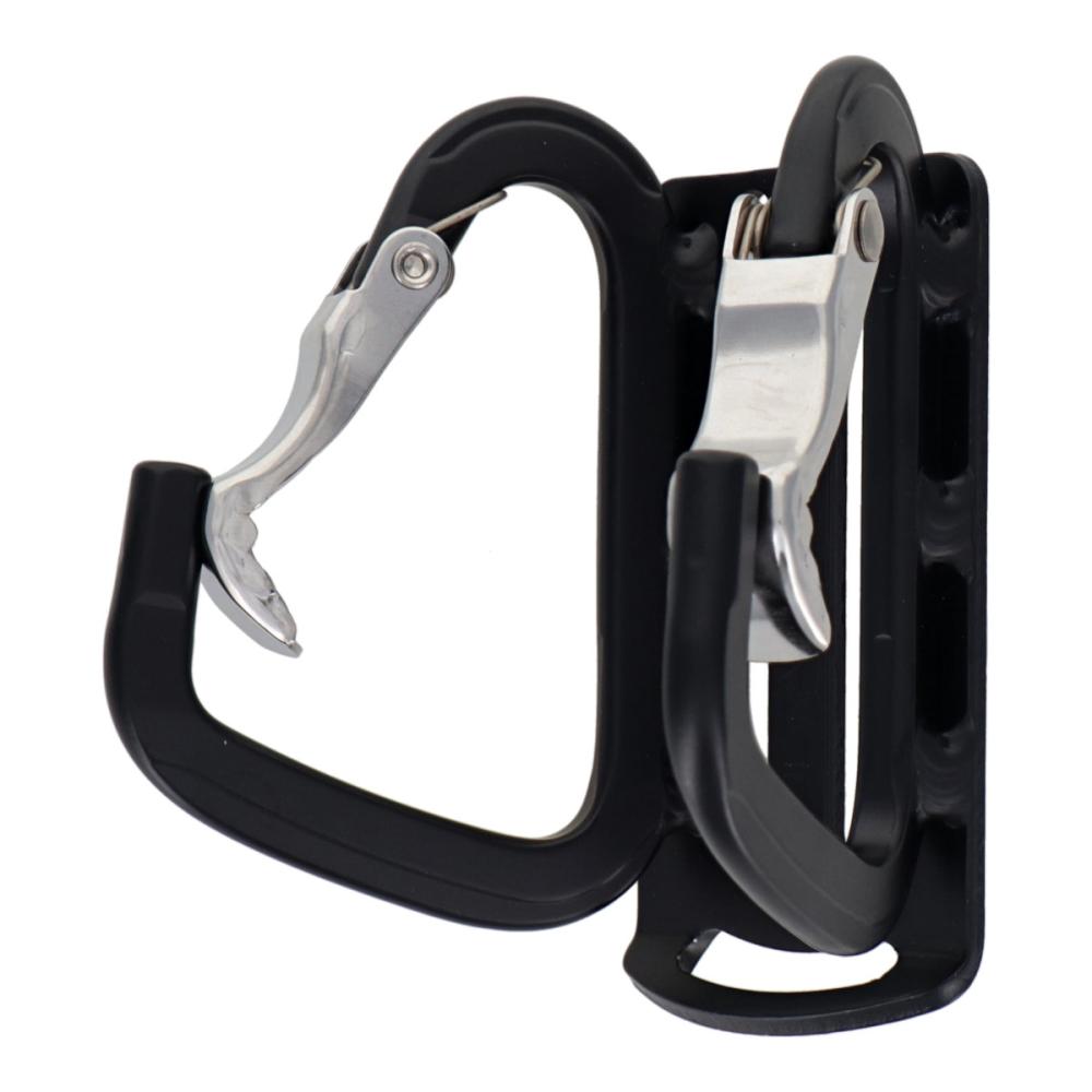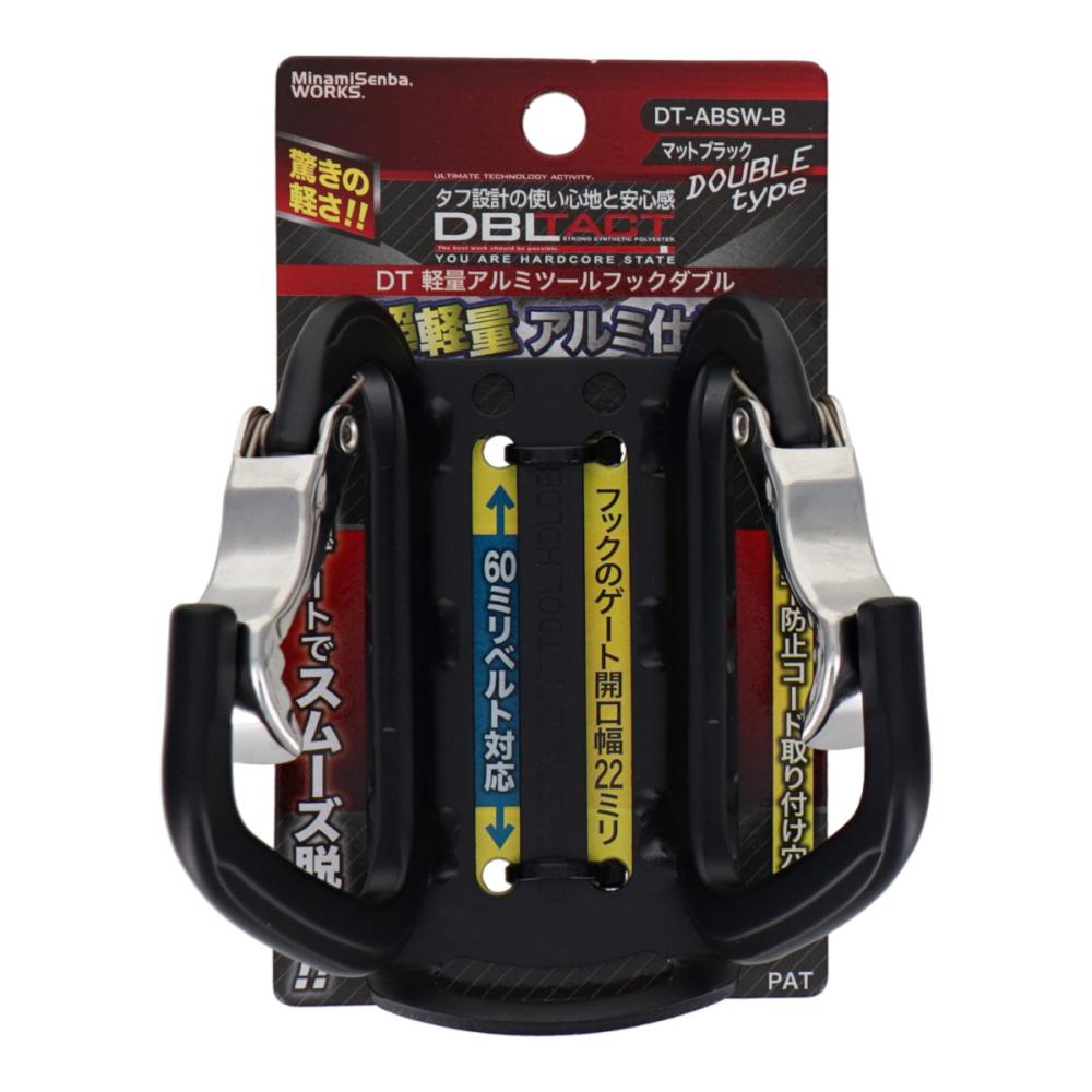 ●湾曲ゲート×爪付きで工具をスムーズ脱着。 ●ダブルフックで省スペース! ●モンキー・レンチなどの吊り下げに。 ●驚きの軽さ! ●サイズ:高さ100×幅95×奥行60mm ●カラー:マットブラック 【特長】 ●爪付き湾曲ゲートでスムーズ脱着! ●フックのゲート開口幅22mm ●60mmベルト対応 ●軽量&高強度! ●落下防止コード取り付け穴を上下に設置 ●強化リブを入れることにより30%破断強度UP! ●6箇所溶接により破損防止(カラビナ部) ●カラビナが直接掛けられるホルダー付き 【材質】 ●本体:アルミ ●ゲート部分:ステンレス