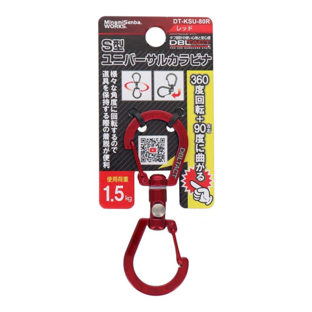 ●様々な角度に回転するので道具や小型バッグなどを保持する際の着脱がより便利に! ●カラー:レッド ●サイズ:高さ83×幅30×奥行8mm ●重量:約16g 【特長】 ●ナイロンベアリング採用でスムーズな回転 ●職人さんはもちろん、アウトドアや普段使いなどでも活躍するアイテム 【材質】 ●亜鉛ダイキャスト 【注意事項】 ※本製品は登山用ではありません。体重をかけて使用することはできませんのでご注意ください。