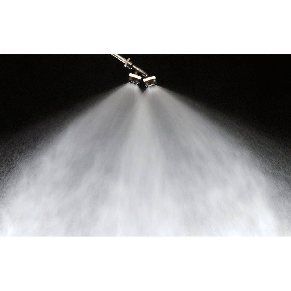 ●バッテリー動噴、背負動噴で使用できる少水量の2頭口ノズルです。 ●吸水量の少ない機器でもご使用いただけます。(吸水量1.5L/分以上、最高圧力1.0MPa以上推奨) ●扇形に広がる霧は均一性に優れ、野菜の防除に最適です。 ●樹脂製のため、軽量です。