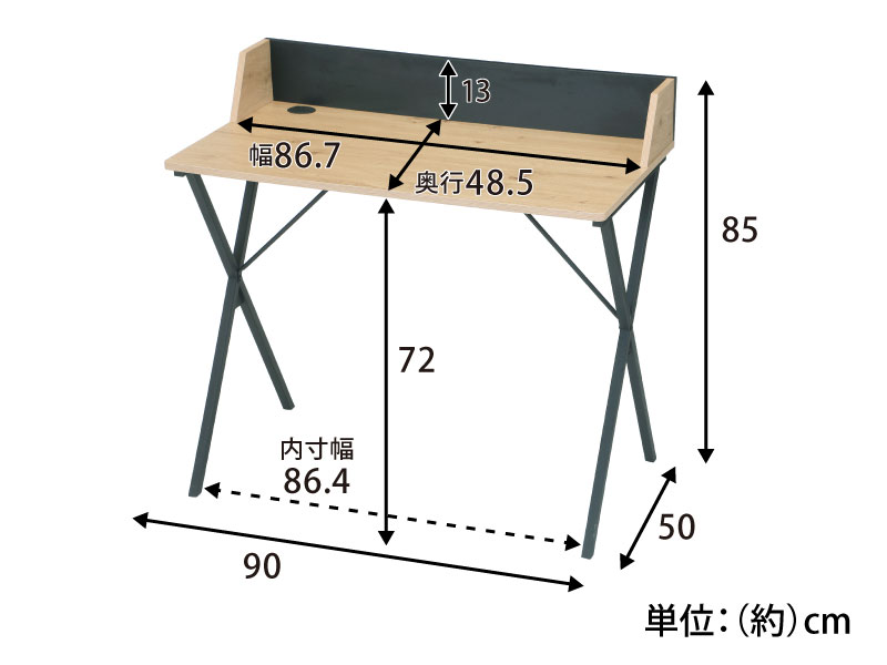 天板内寸:約幅86.7×奥行48.5cm(側板・背板の厚さを含まないサイズ)