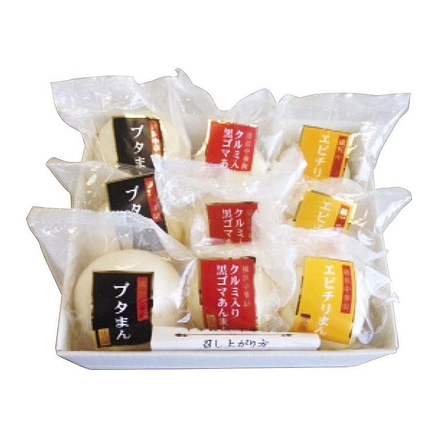 【セット内容】ブタまん120g、クルミ入り黒ゴマあんまん100g、エビチリまん100g×各3
