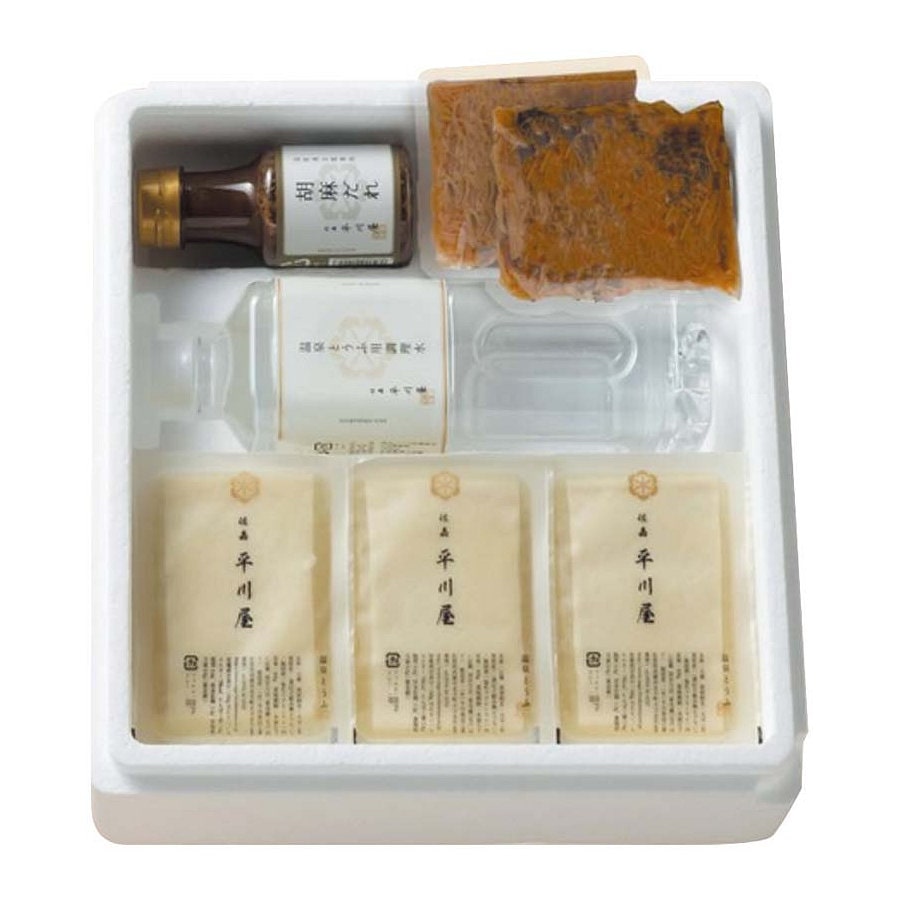 【セット内容】温泉とうふ400g×3、温泉とうふ用調理水1000ML、胡麻だれ150ML、雑炊用きのこ具材40g×2