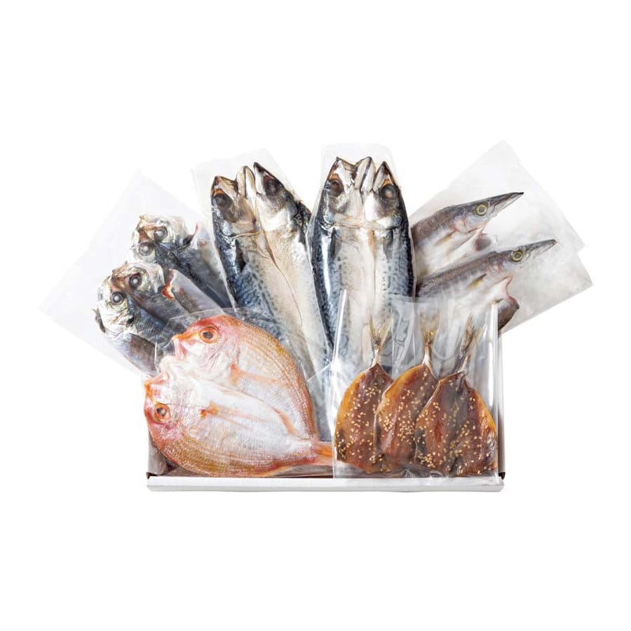 九州産のお魚を手早く捌きひと塩をして味付け、1枚1枚丁寧に干し上げ旨みを凝縮させたひものに仕上げました。5種類の味をお楽しみ頂けるギフトセットです。