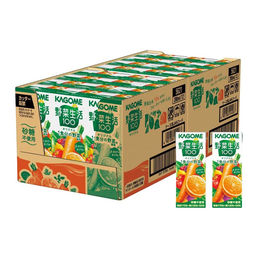 「野菜生活100」オリジナルは、20種類の野菜と3種類の果実を使用した野菜果実ミックスジュースです。1食分の野菜※を使用し、野菜汁70%+果汁30%=100%。野菜比率70%でありながらフルーティーなおいしさを実現。B‐カロテンの高いにんじん汁を厳選。にんじんの青臭い香りをカットし、にんじん汁のコクと甘みで家族みんながおいしく手軽に野菜を補えます。※厚労省推進、健康日本21の目標値(1日350g)の約1/3である野菜120g分。野菜の全成分を含むものではありません。