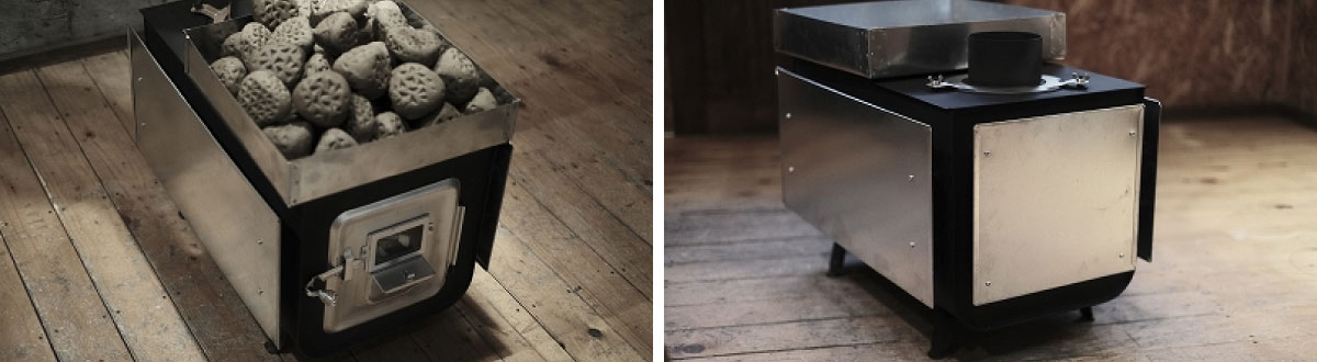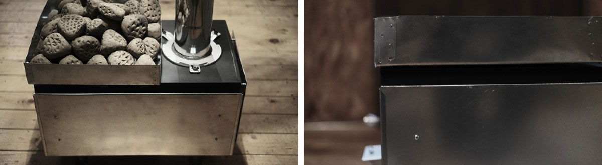 サウナストーブとしてご使用される場合は、フタを外し、サウナストーンBOXを載せてご使用ください。(直火で熱することでサウナストーンがより早く熱くなります。また、煙突周りにストーンを置くと早く石が熱くなります。)