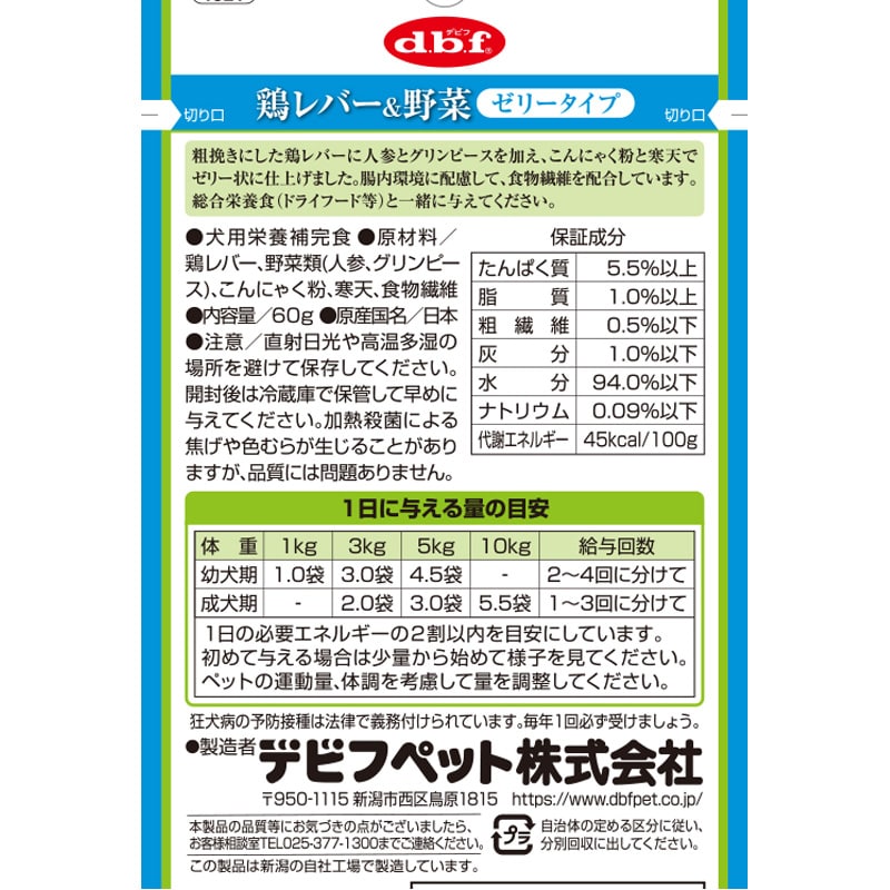 原材料・成分:鶏レバー、野菜類(人参、グリンピース)、こんにゃく粉、寒天、食物繊維