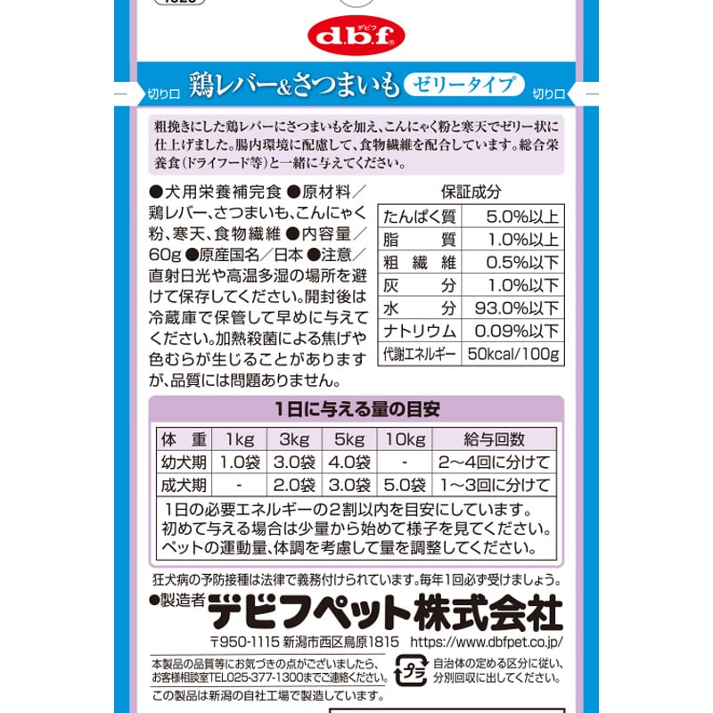 原材料・成分:鶏レバー、さつまいも、こんにゃく粉、寒天、食物繊維