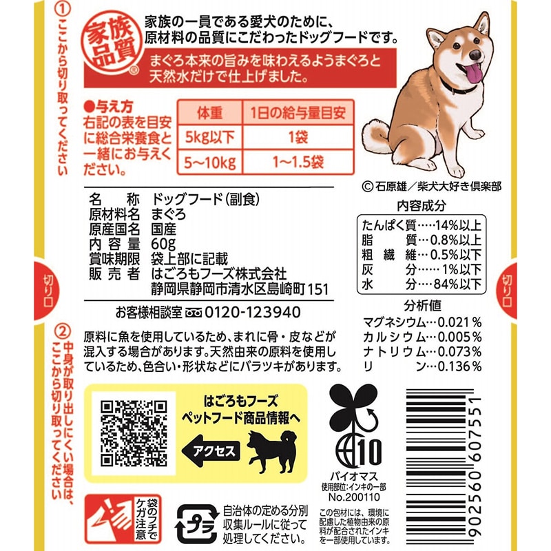 商品の利用(調理)方法:1日の給与量は、5kg以下の体重は1袋、5~10kgは1~1.5袋を目安に、総合栄養食と一緒にお与えください。