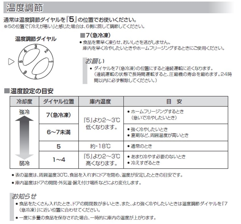 ・冷却方式:直冷式 ・ドア枚数:1枚 ・定格内容積:82L ・電源電圧:単相100V(50/60Hz共通) ・定格消費電力(50/60Hz):電動機47W/52W ・年間消費電力量(50/60Hz):173kWh/年 ・年間目安電気料金※1kWh=31円(税込):5,360円 ・フリーザー機能:フォースター ・霜取り方式:手動 ・省エネ基準達成率(2021年度):100% ・多段階評価点:2.9 ・付属品:引き出し上段・中段・底(各1個)、ガラス棚上・下(各1個)、ヘラ(1個) ・放熱スペース:左右20mm、後部100mm、上部100mm ・庫内最低温度目安:-20~-21℃ ・運転音:25db ・電源コード長さ:1.9m ・耐熱100℃、耐荷重30kgのの天面鋼板使用で電子レンジなどを 載せることができます。