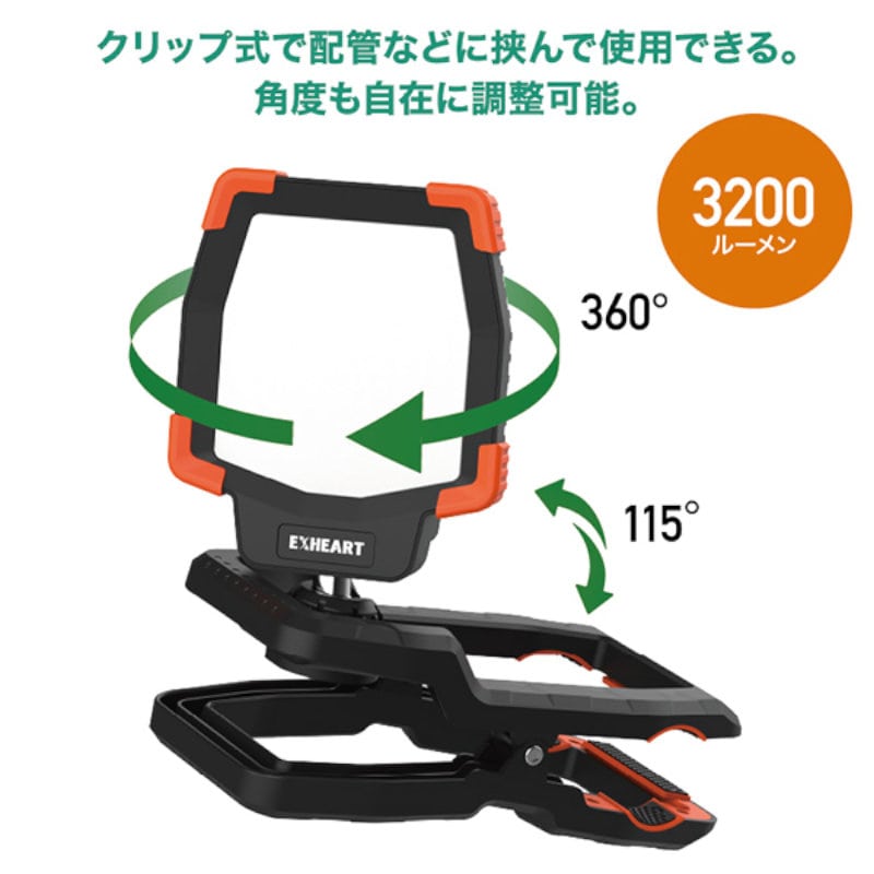 "●角度も自在に調整可能 ●万が一に備えてパワーバンク機能も搭載 ●明るさ:(High)3200lm/(Mid)1600lm/(Low)800lm ●点灯時間:(High)約5時間/(Mid)約9時間/(Low)約15時間"