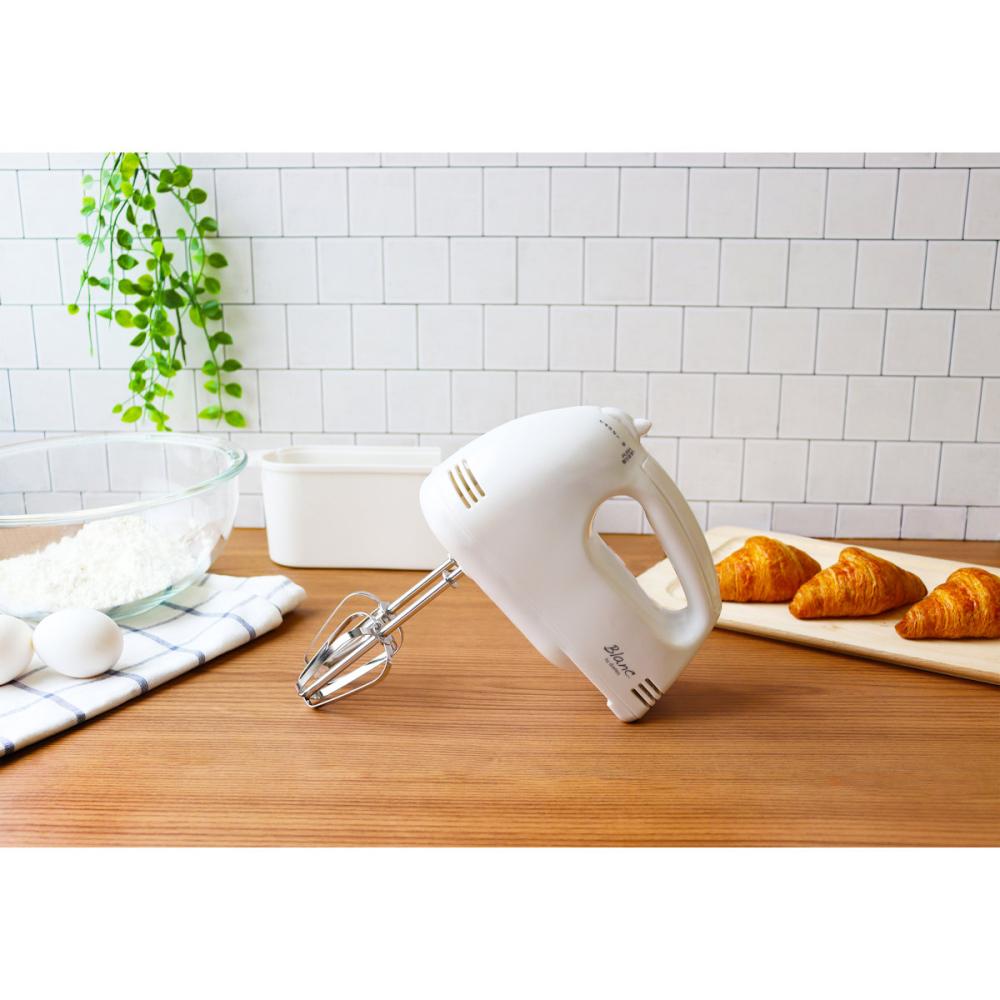 ・ ワンタッチでかんたんに取り外し可能なビーター。 ・電源コード、ビーターをコンパクトにしまえる収納ケース付。 ・スピード5段階切替可能。