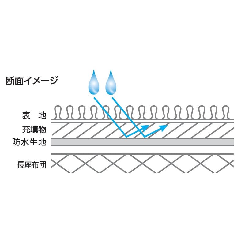 ■裏地に防水生地を使用することで、水分が長座布団へ浸透するのを防ぎます。
