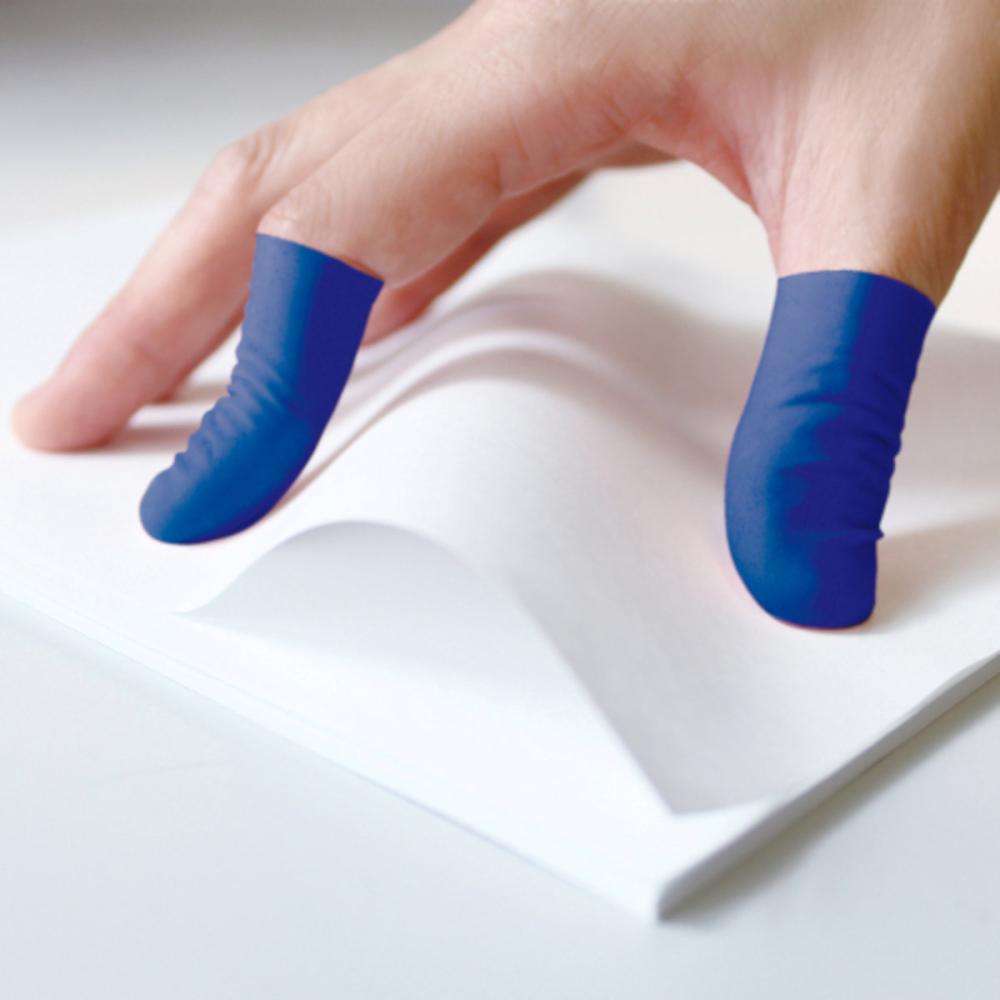 事務仕事、手芸、指先の保護などに。つけたままタッチパネル、スマートフォンの使用も可能な抗菌仕様の指サック。保管に便利なチャック袋入りです。