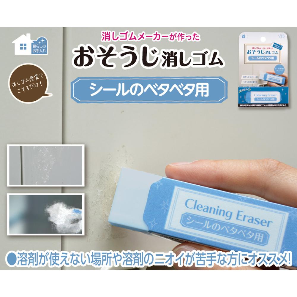 ゴムの力でのり残りやベタつきを絡めとる。溶剤を使わないからツンと鼻につく、嫌なにおいがありません。シールをはがした後に残ったベタつきを消しゴムと同じように汚れの上から直接こすってください。本体についた消しカスと汚れはちぎり取り、常に新しい面を使用してください。