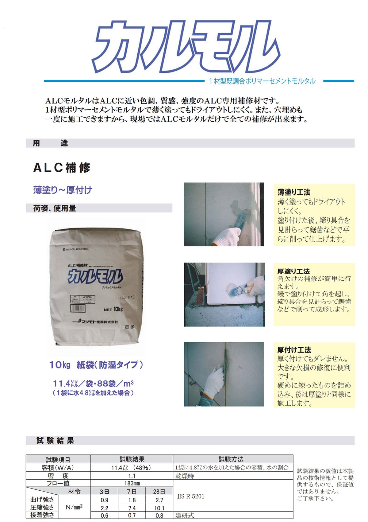 ALCに近い色調、質感、強度のALC専用補修材です。
