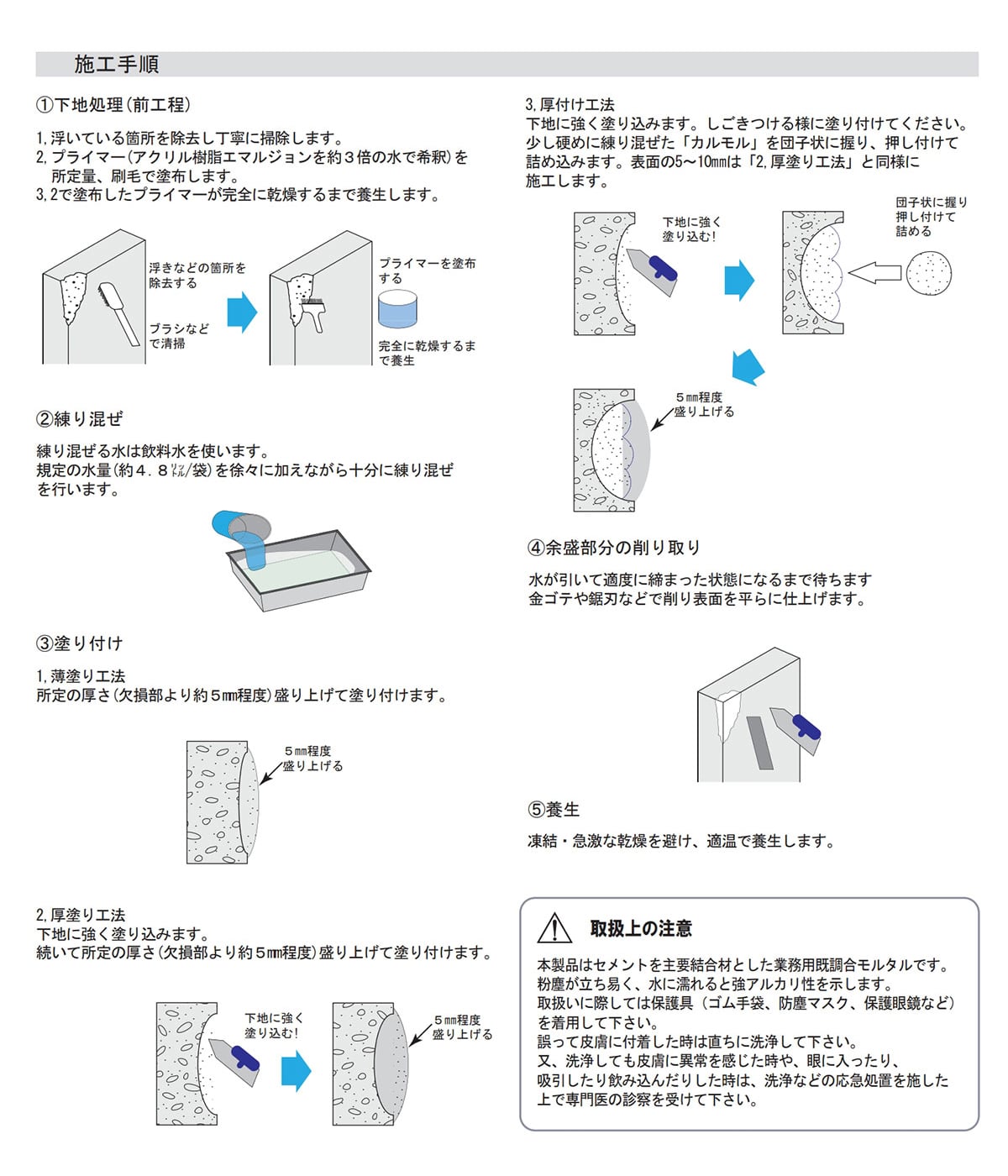 1材型ポリマーセメントモルタルで薄く塗ってもドライアウトしにくく穴埋めも一度に施工できます