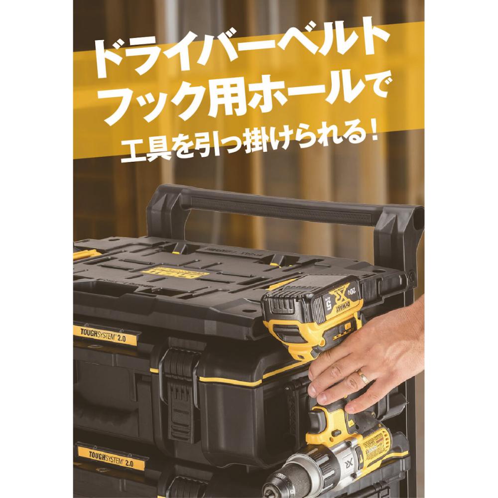 "●TOUGHSYSTEM 1.0 / 2.0に連結可能になります。 ●パワーツールホルダー:ドリル収納用のベルトフック設計あり。"