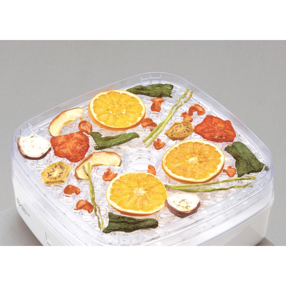 ・2種類のトレイでより使いやすくなりました。 ・だれでも簡単に無添加でヘルシーな自家製ドライフルーツや乾燥野菜が作れます。 ・食材の厚みに合わせてトレイの高さを調節できる。