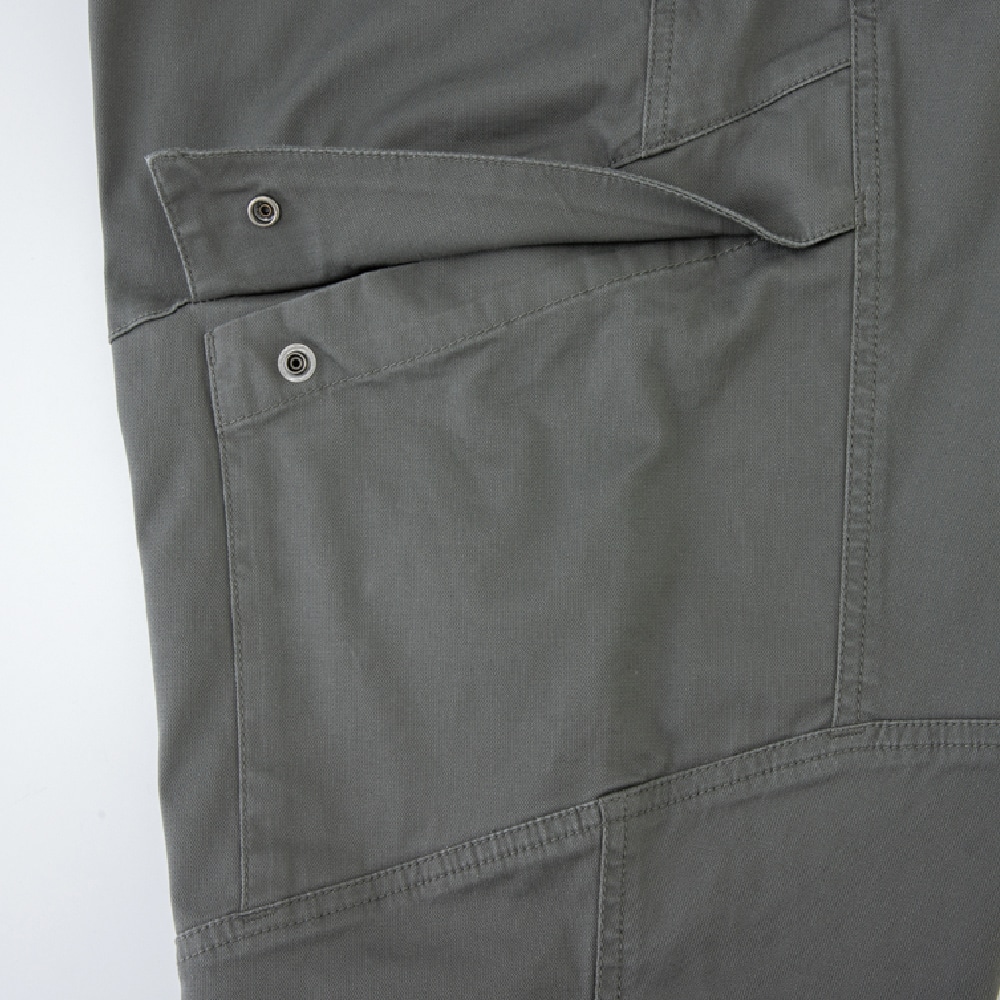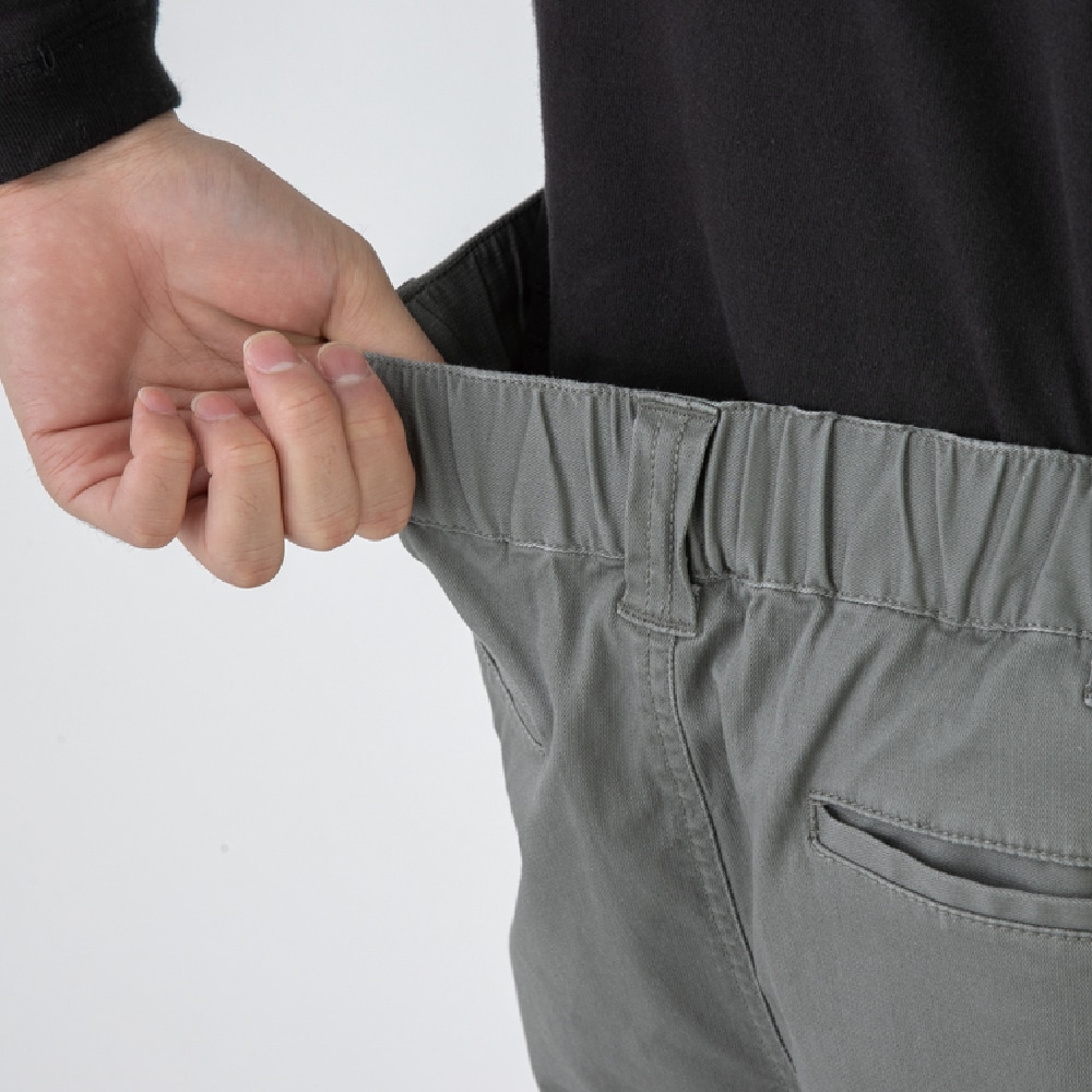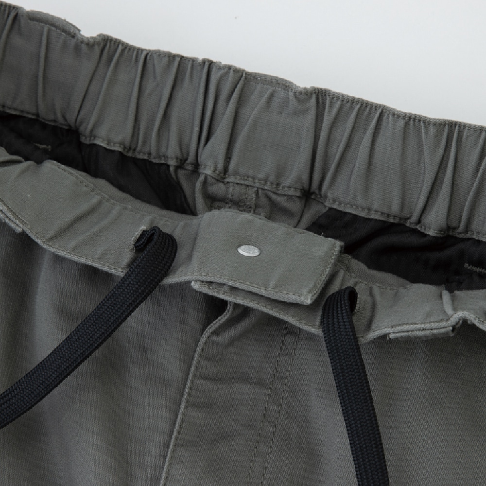 ●ウエストは動きやすく快適な総ゴム仕様 ●ウエスト内側にドローコードがついているのでベルトなしで着用可能 ●両サイドには大きめで機能的なミリタリーポケット ●膝を曲げた時のツッパリ感を軽減する膝ダーツ仕様 ●両脇にはカラビナを装着可能なループ付き(カラビナは付属されていません)