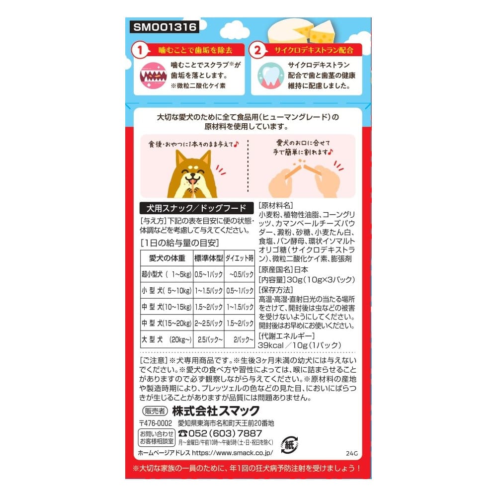 サイクロデキストラン&微粒二酸化ケイ素配合で歯の健康維持に配慮したスナックです。