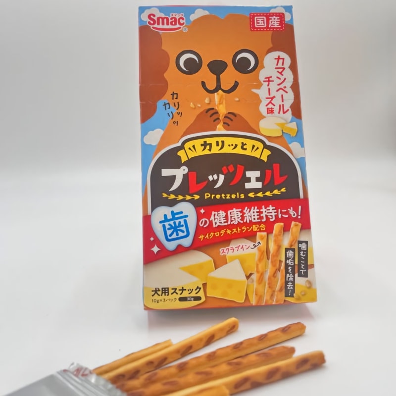 お取り扱い上の注意:犬専用商品です。生後3ヶ月未満の幼犬には与えないでください。愛犬の食べ方や習性によっては、喉に詰まらせることがありますので必ず観察しながら与えてください。原材料の産地や製造時期により、プレッツェルの色などの見た目、においにばらつきが生じることがありますが品質に問題ありません。