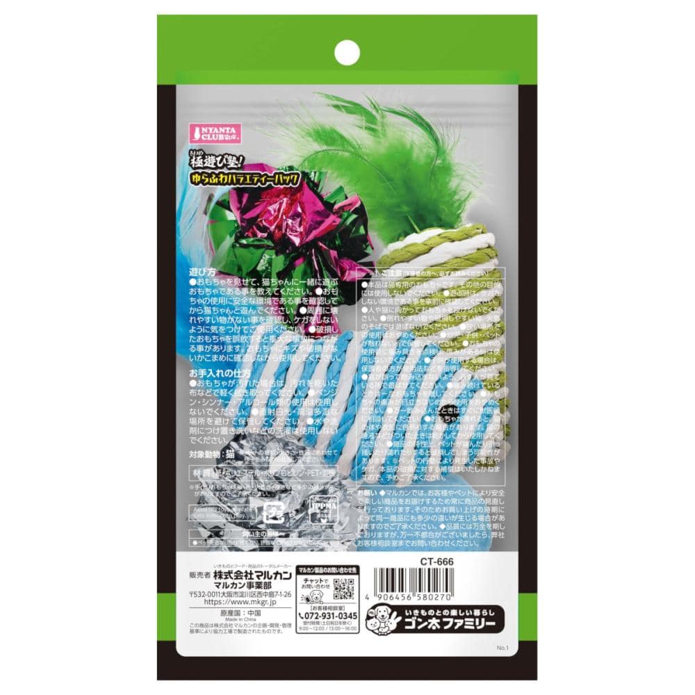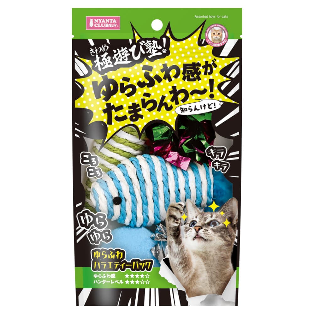 ●羽根付きフィッシュトイ・羽根付きキャロットトイ・シャカシャカボール2個・ふわふわボール 不規則にゆらふわする動きは小動物や虫のよう。 ●本能が反応してしまうおもちゃの詰め合わせ!
