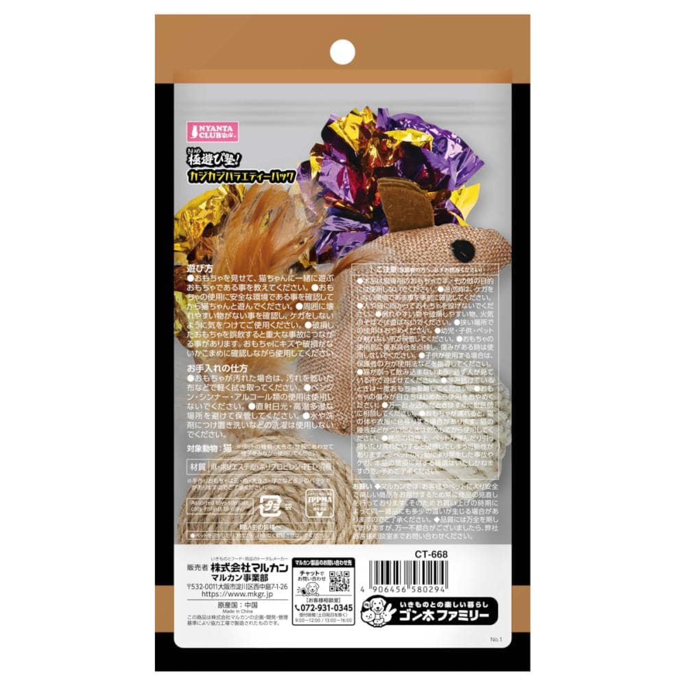 ●麻と羽根の太鼓トイ・麻のしっぽ付きボール・マウストイ・カシャカシャボールx2個 ●匂って、かじって、くわえて運ぶ!転がし弄んでしまうおもちゃの組み合わせです。