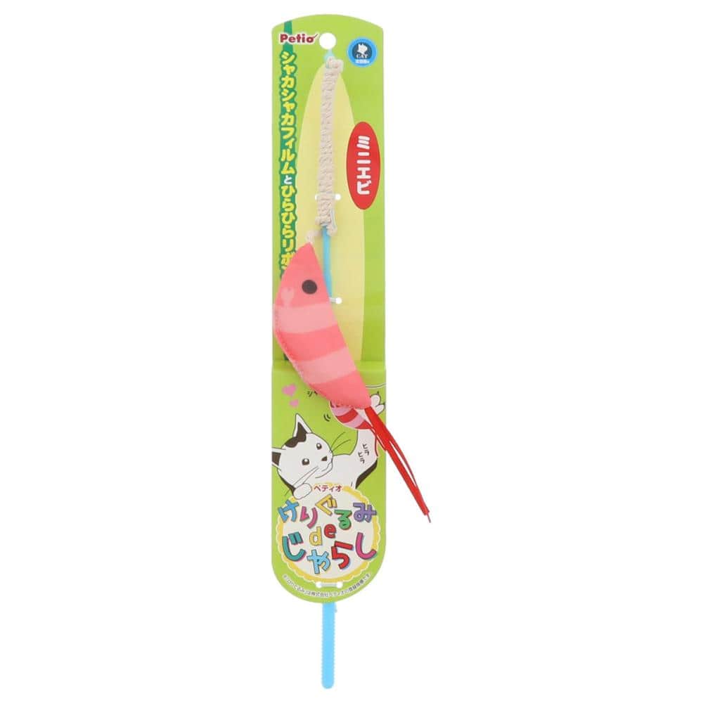 シャカシャカフィルムとひらひらリボンが楽しいじゃらし。人気のけりぐるみモチーフ!