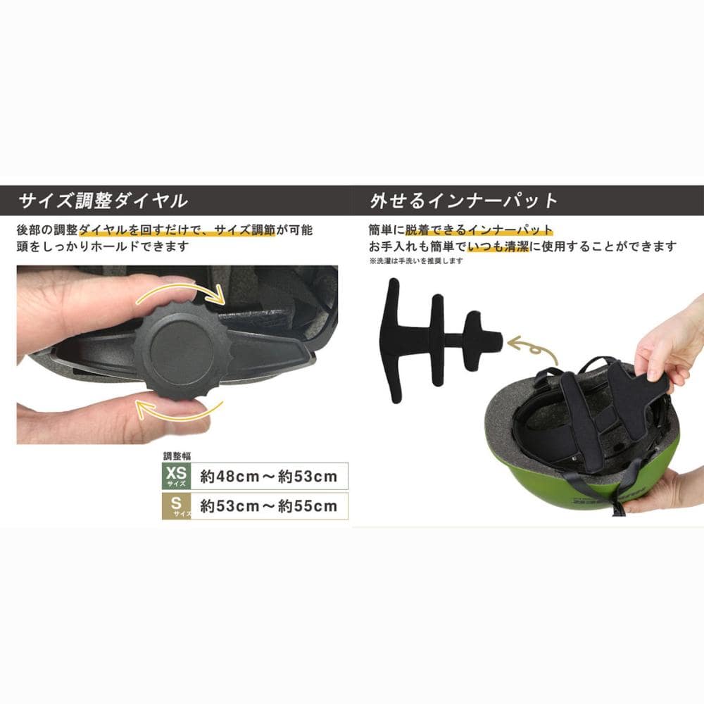 頭囲53~55cm未満。サイズ調整可能なダイヤル式アジャスター付き/取り外し簡単、洗えるインナーパッド/SGマーク認定商品