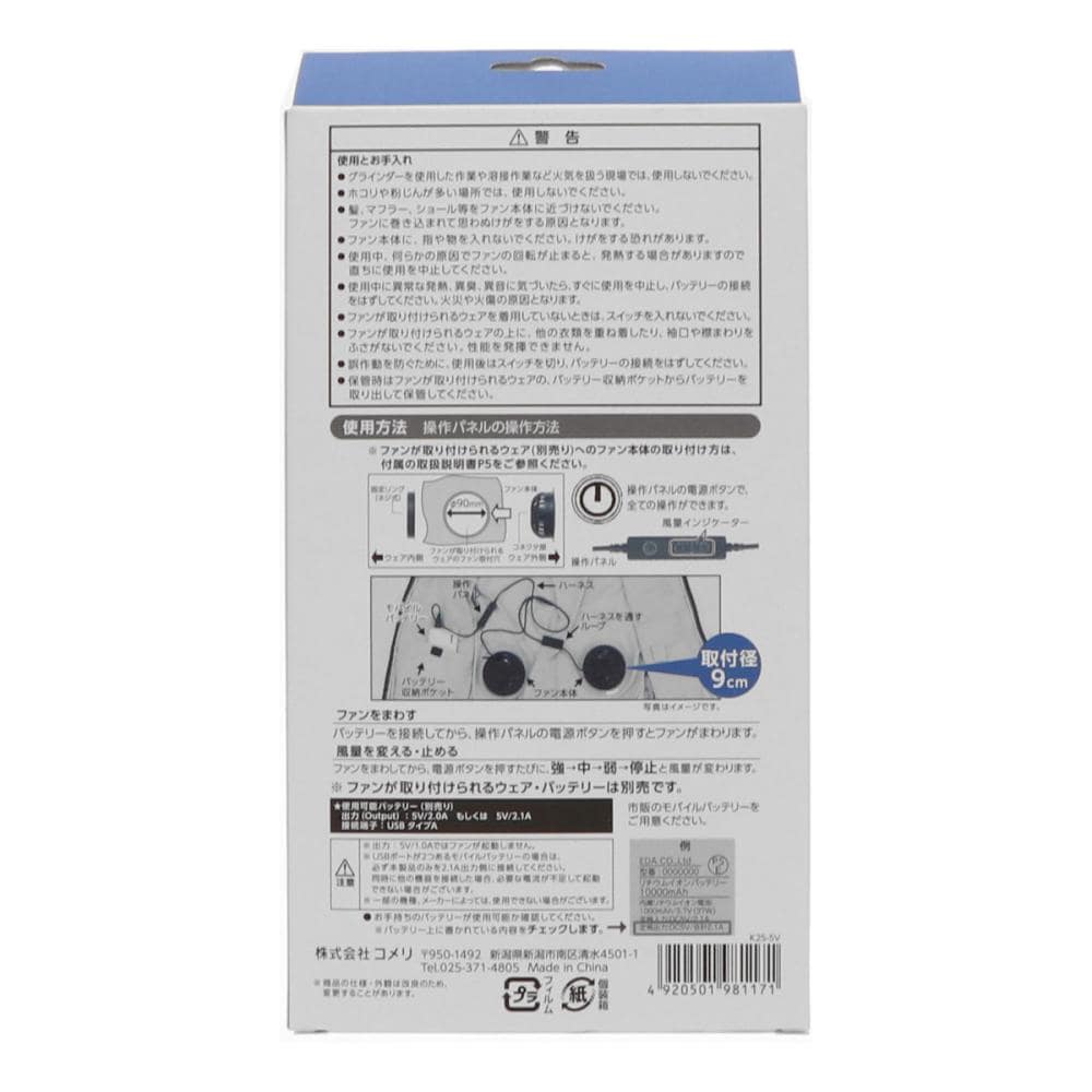 ●モバイルバッテリー容量10,000mAh使用時のファンの稼働目安:風量強・約6時間/風量中・約8時間/風量弱・約10時間
