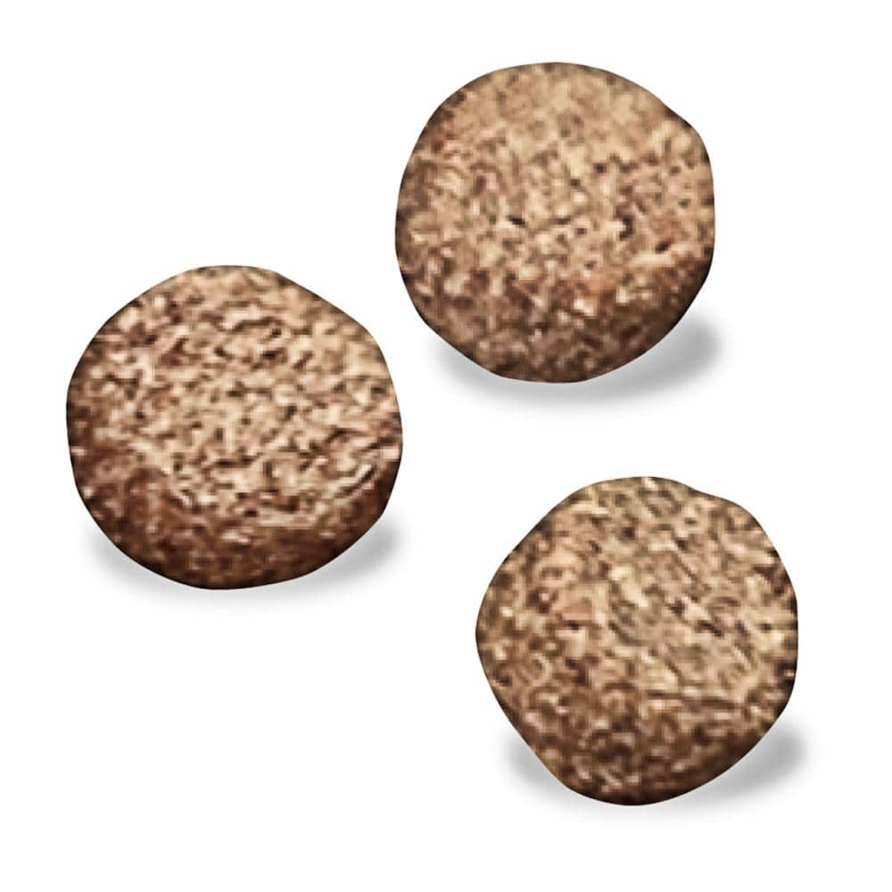 原材料・成分:チキン、小麦、小麦繊維(食物繊維供給源)、ビートパルプ(食物繊維供給源)、セルロース(食物繊維供給源)、オーツ、ターキー、ダック、チキンレバー加水分解物、リンゴ、酵母、コーングルテン、チコリ、サーモンオイル、藻類油、サイリウムハスク、ビール酵母、亜麻仁、ニンジン、ローズマリー、マリーゴールド、植物性油脂、ミネラル類(P、Zn、Mn、Cu、I、Se)、アミノ酸類(DLーメチオニン、タウリン、Lーカルニチン)、調味料、コンドロイチン硫酸、グルコサミン塩酸塩、ビタミン類(E、A、D3)、酸化防止剤(トコフェロール抽出物)