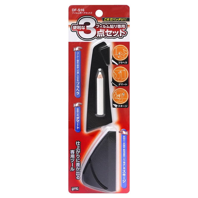 フィルム貼り専用ツール プラヘラのセットです。 内容物 型取り用ダマート 水切り・水抜き・気泡抜き・シワ伸ばし用スキージ 仕上げの際のコーナー留め・窓枠への挿し込み用プラヘラ
