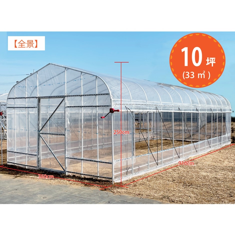 ●ツマ柱は25mmのパイプを使用し、お客様ご自身でも建てられるよう施工のしやすさにこだわりました。 ●ドアはMEスライドドアを採用し、左開き、右開きどちらの仕様にも出来るようドアを中央にしております。 ●ドア、パイプ一式、フィルム止め材、部品、両サイド巻上げ機が全てがセットのオールインパッケージ。 ●プロユースの本格的資材を使用しており、雨や風、霜から植物を守り、成育を促進します。 ●径25mmのパイプ骨材とビニペットを専用の部品で組み立てられるキットです。 ●丈夫な農業用ポリオレフィンフィルム使用。 ●屋根のフィルムはハウスの形に合わせた立体加工で被せるだけの簡単施工となっております。 ○東都興業社製品最大サイズの10坪となり、間口3.6m、奥行も9.1mと大きく、ハウス内の高さも2.5m(30cm地面埋込)と作業時も快適です。 ※ヒロガーデンライト10SDのリニューアル商品です。