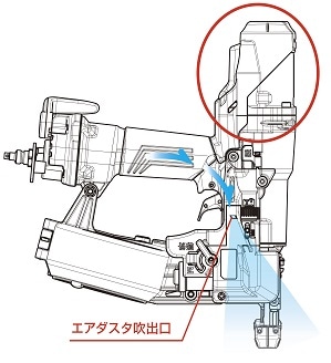 スーパーネイラでご好評をいただいているエアダスタ機構を本機でも搭載。汚れたエアが吹き出しにくい構造で、クリーンなダスト作業が行えます。