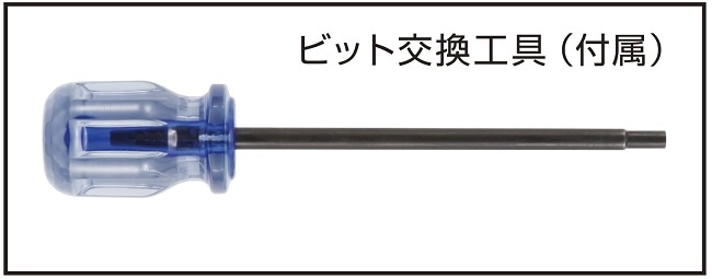 付属のビット交換工具を用いて、本体を分解することなくビット交換が可能です。