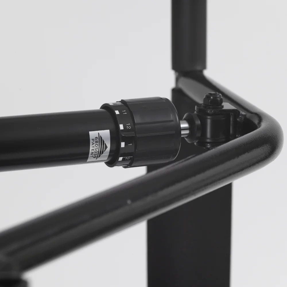 アームバーの負荷調節はダイヤルを回すだけで簡単に調節でき、支柱の高さや背もたれ位置も自分の体型や目的に合わせて細かな調節ができます。