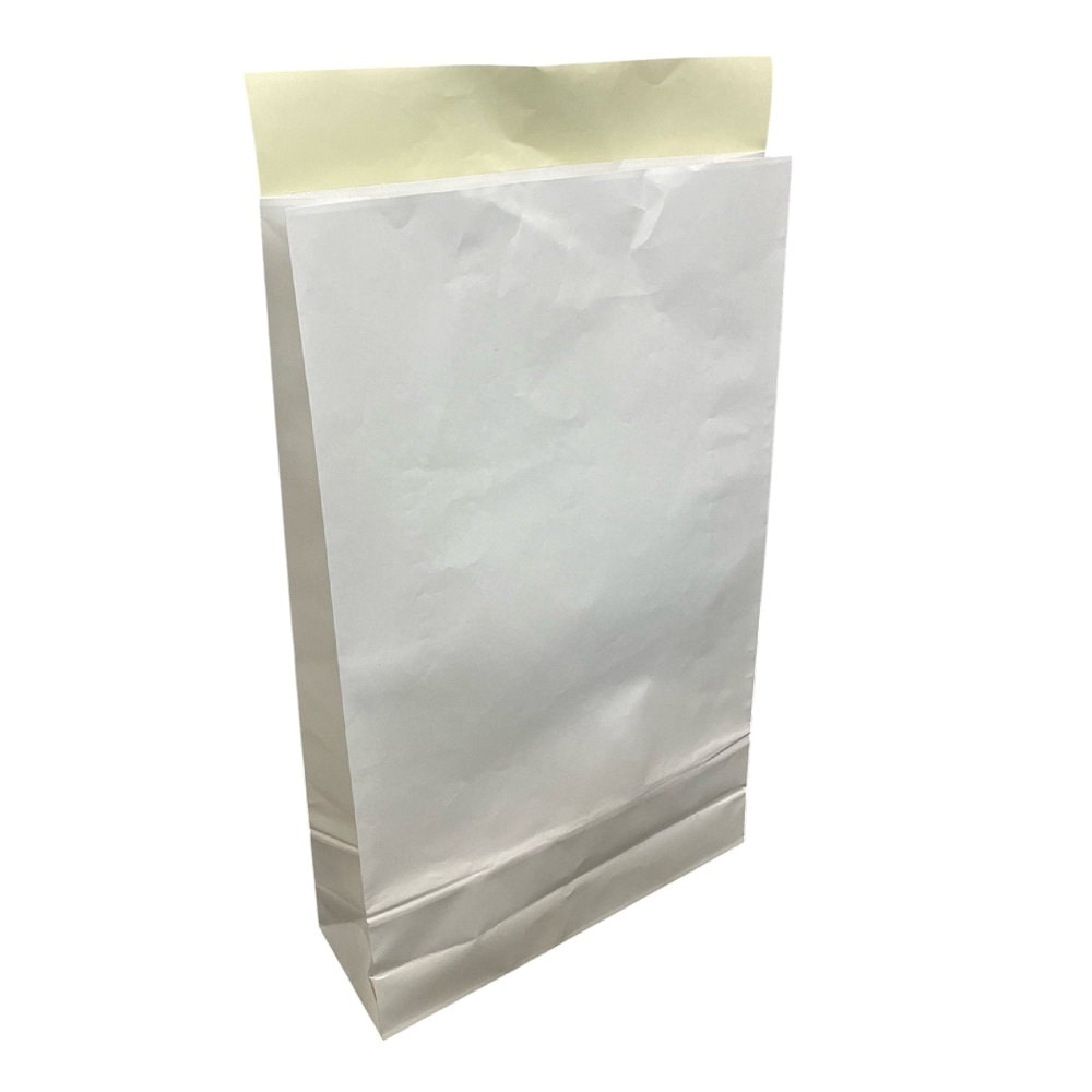 ●サイズ/巾260×マチ70×高さ395+ベロ60mm ●坪量/120g/平方メートル ●材質/片艶晒+PE ●仕様/上部糊付ベロ付 ●生産国/日本 ●特徴/水をはじき、塗れても大丈夫