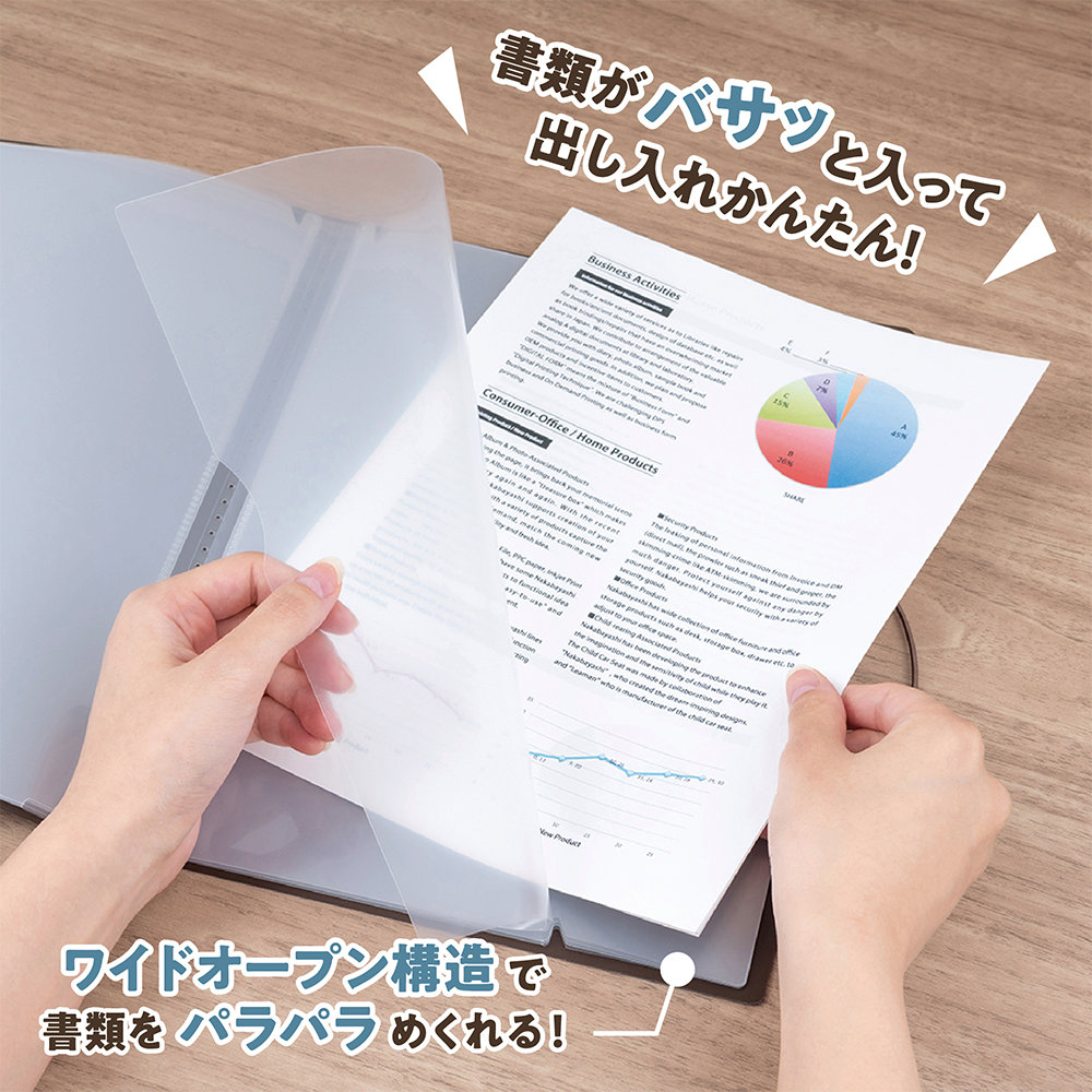 ■クリアホルダー型ポケットで、上からも横からも書類をバサっと簡単に収納できます。