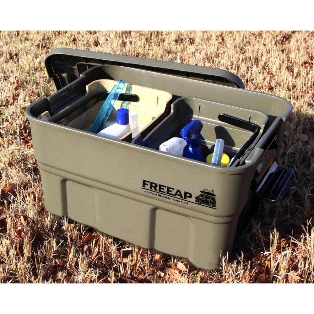 持ち手付で持ち運びに便利。別売りのバケツチェアが中に2つ入ります。中の仕分け等に便利です。