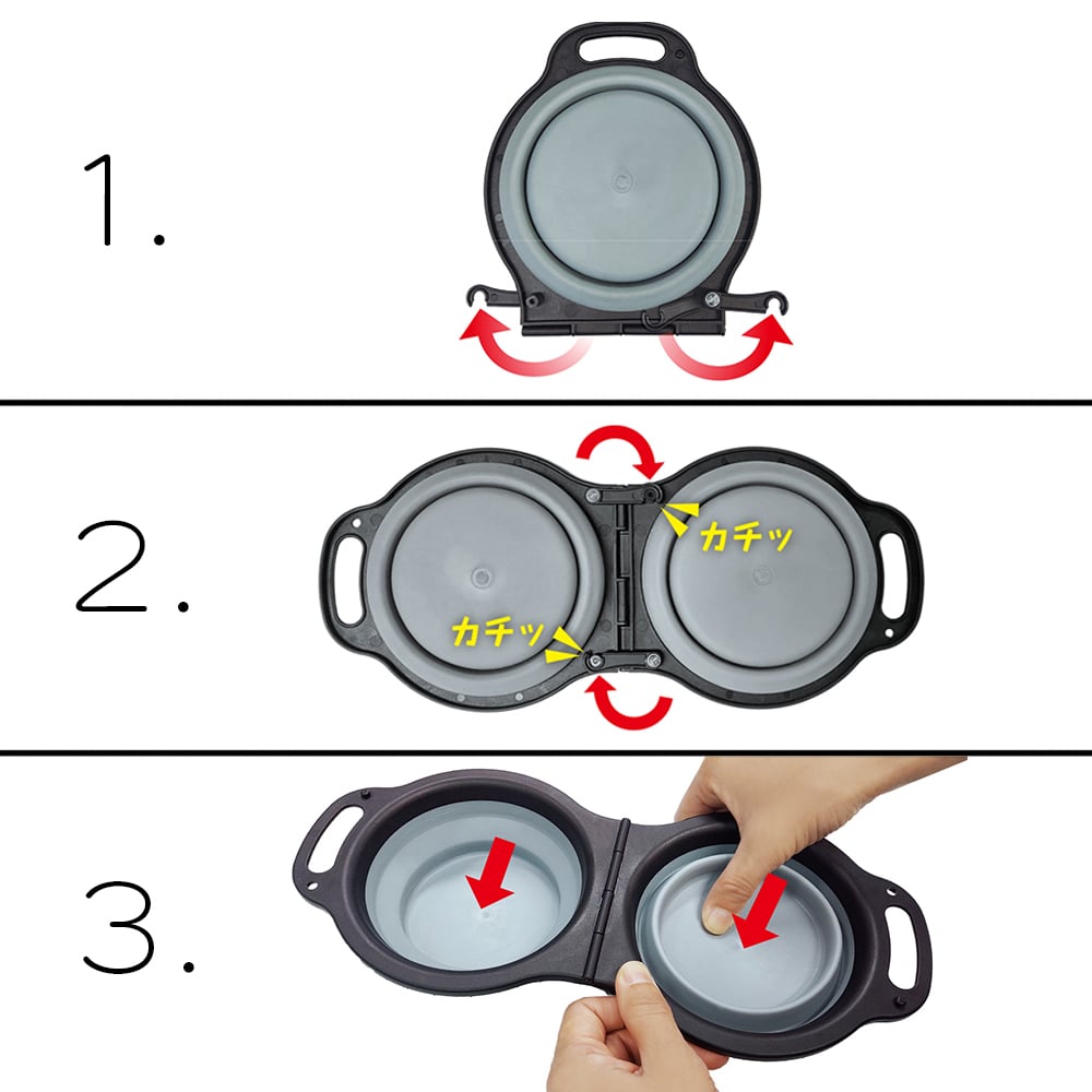 ●これひとつでお水やフードを分けて同時に与えることができます。