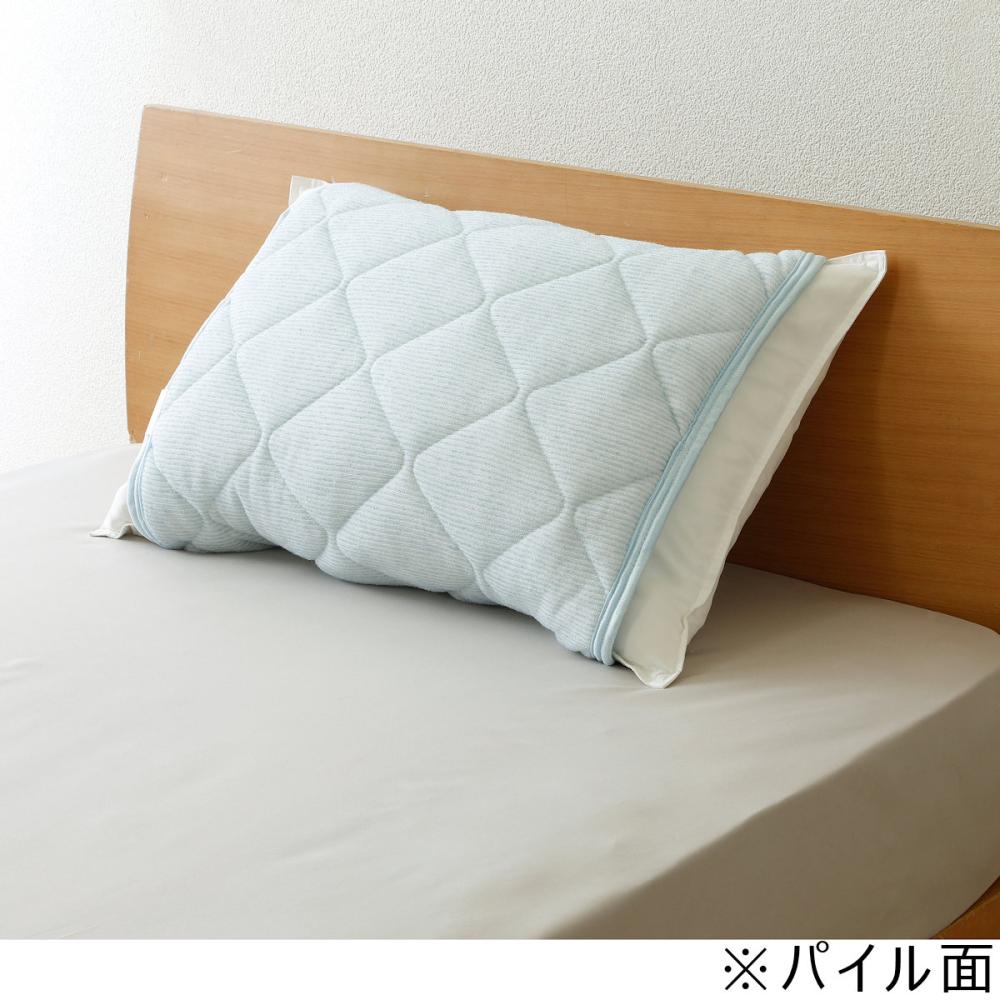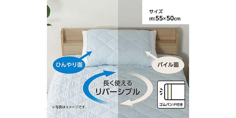 ■暑い時期は接触冷感のひんやり面、肌寒い時期はパイル面など季節に合わせて使い分けができるリバーシブルタイプ。
