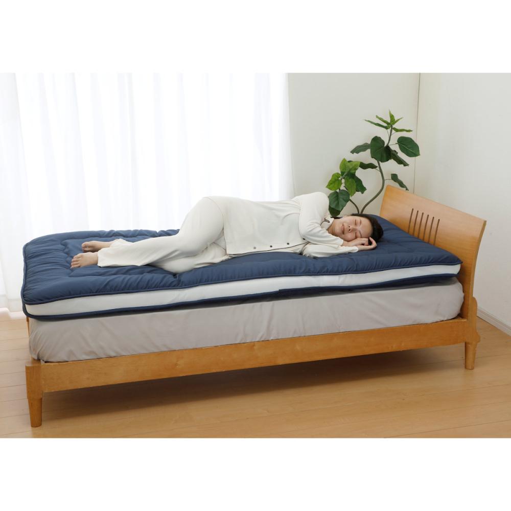 ■厚さ10cmの厚手タイプなのでそのまま1枚で使用いただけます。マットレスの上に重ねることで厚みを更にプラスするのもおすすめです。
