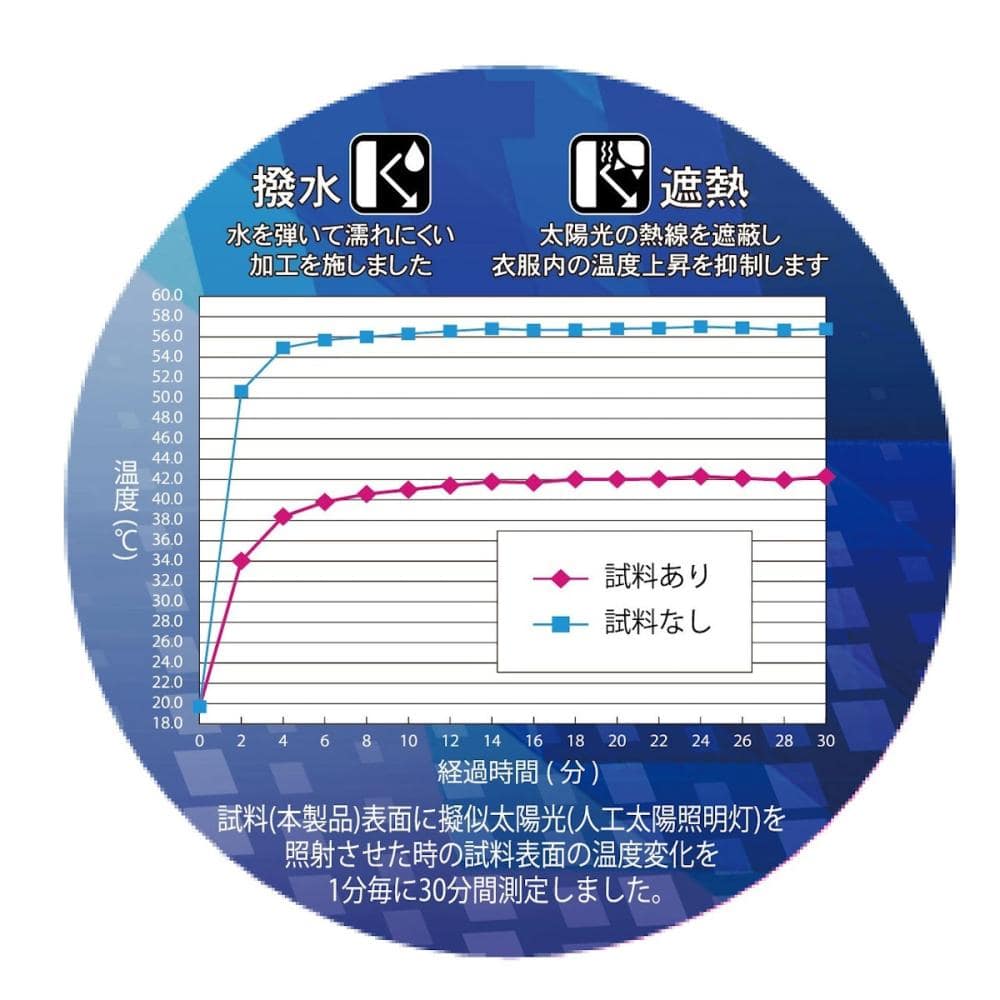 裏地にチタンコーティングを施すことで太陽光の熱を遮熱し、衣服内の温度上昇を抑制、-10℃の効果があります