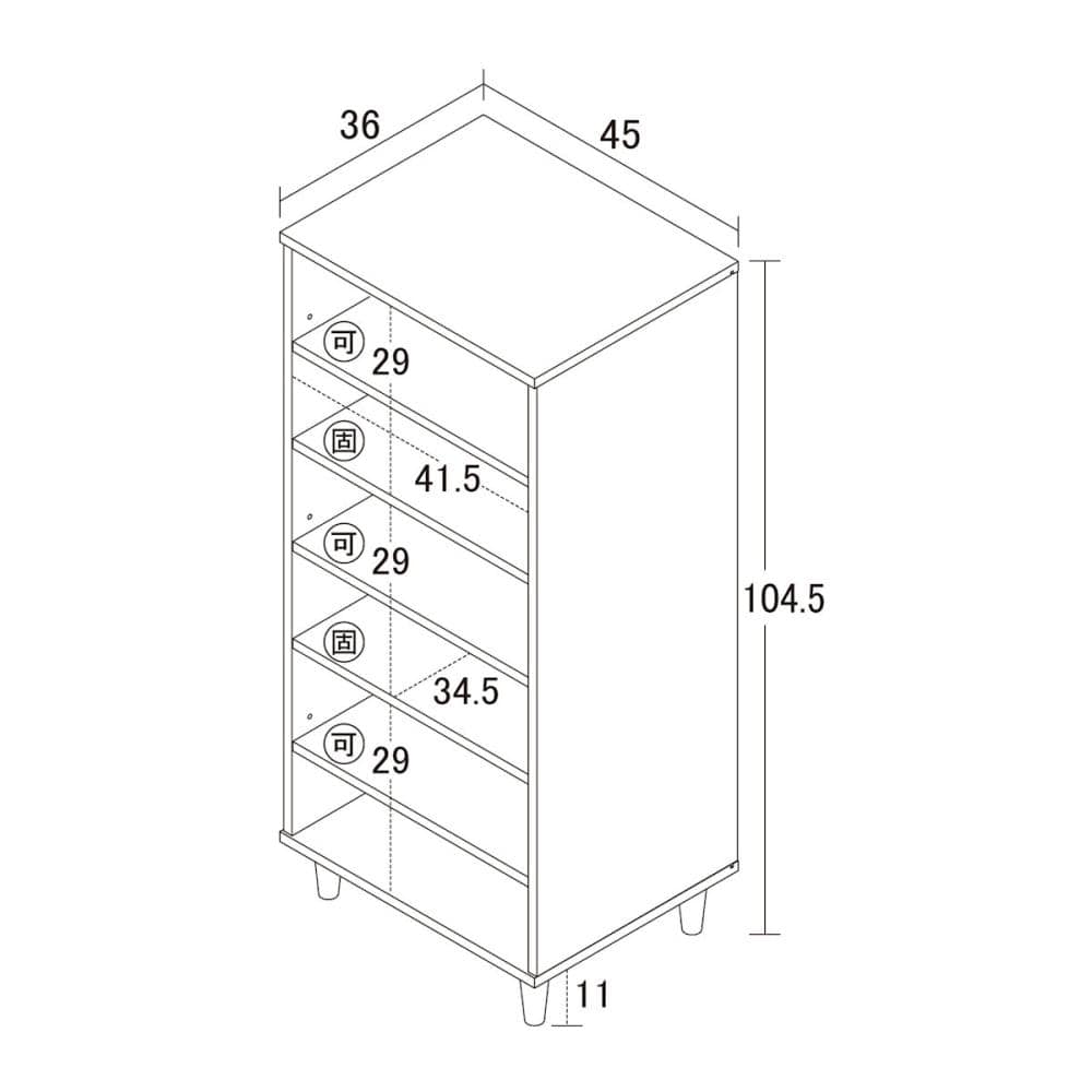 ■固定棚2ヶ所、可動棚3枚(3ヶ所移動)で靴のサイズに合わせて調節できます。