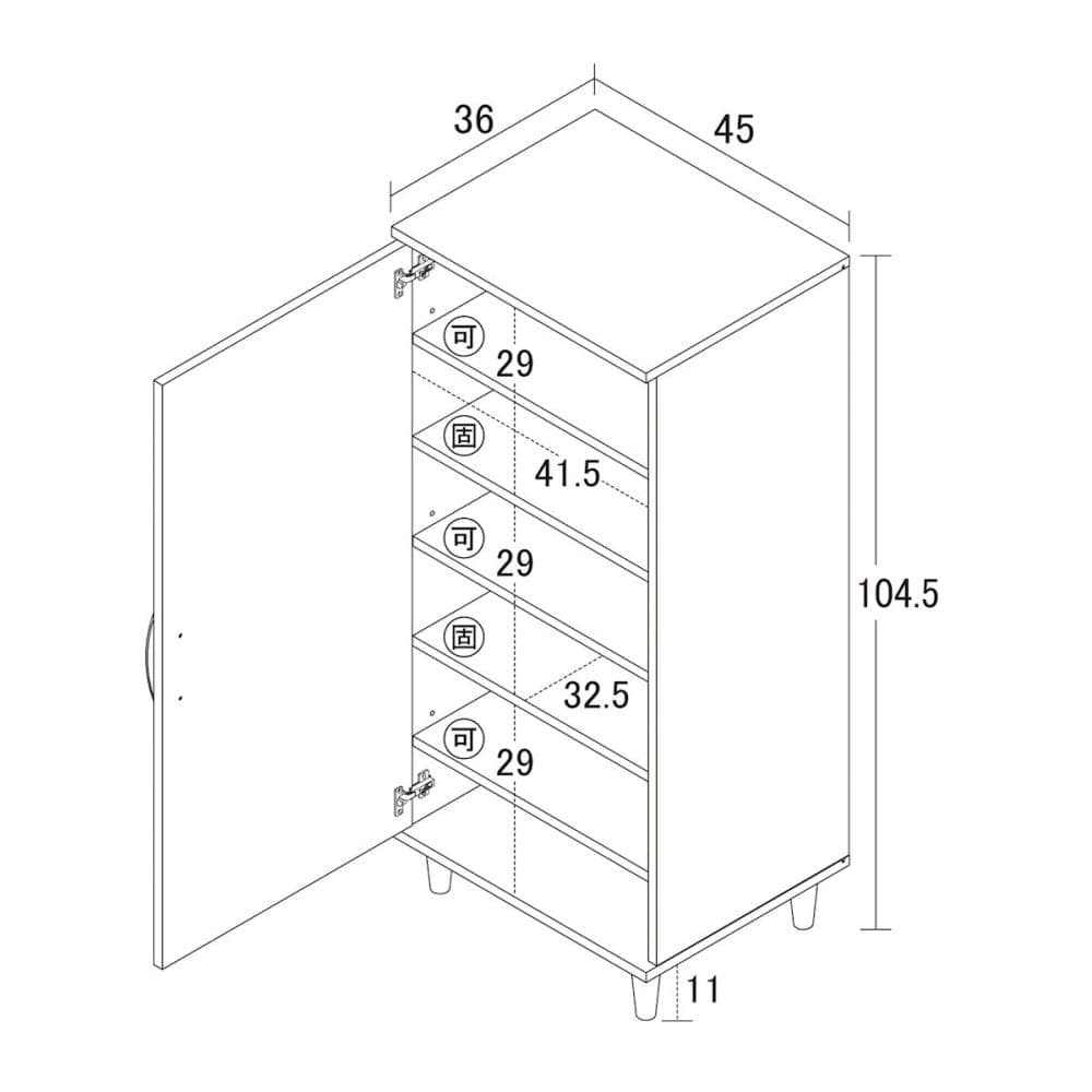 ■固定棚2ヶ所、可動棚3枚(3ヶ所移動)で靴のサイズに合わせて調節できます。