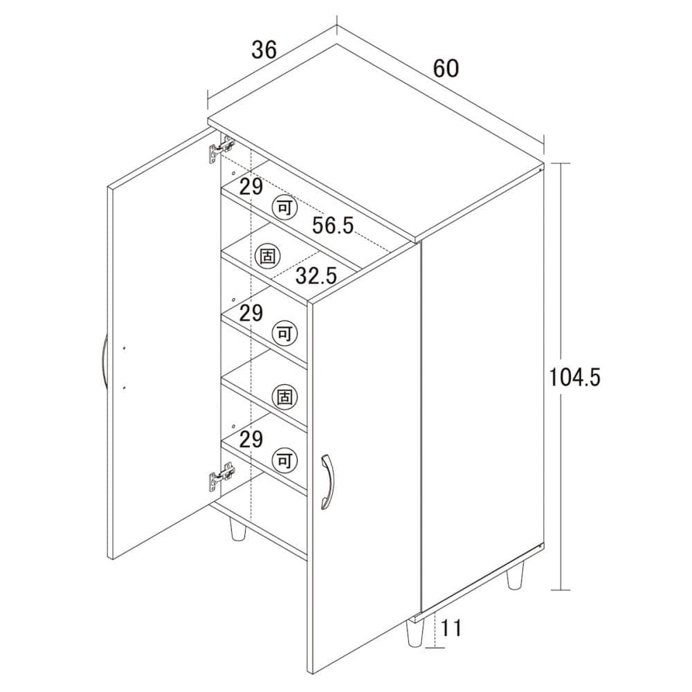 ■固定棚2ヶ所、可動棚3枚(3ヶ所移動)で靴のサイズに合わせて調節できます。