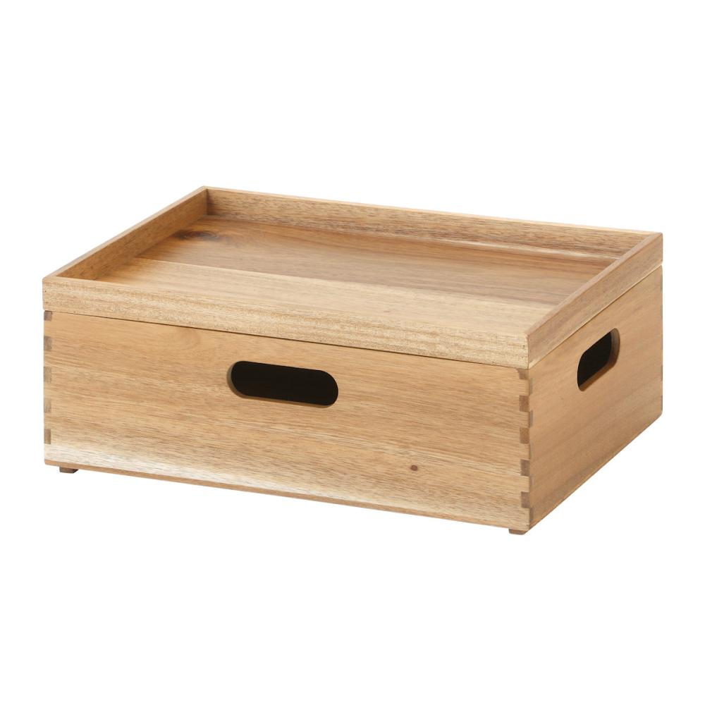■「アテーナライフ 積み重ねできるアカシア収納ボックス」専用トレーです。「レギュラー」「横型ハーフ」兼用です。