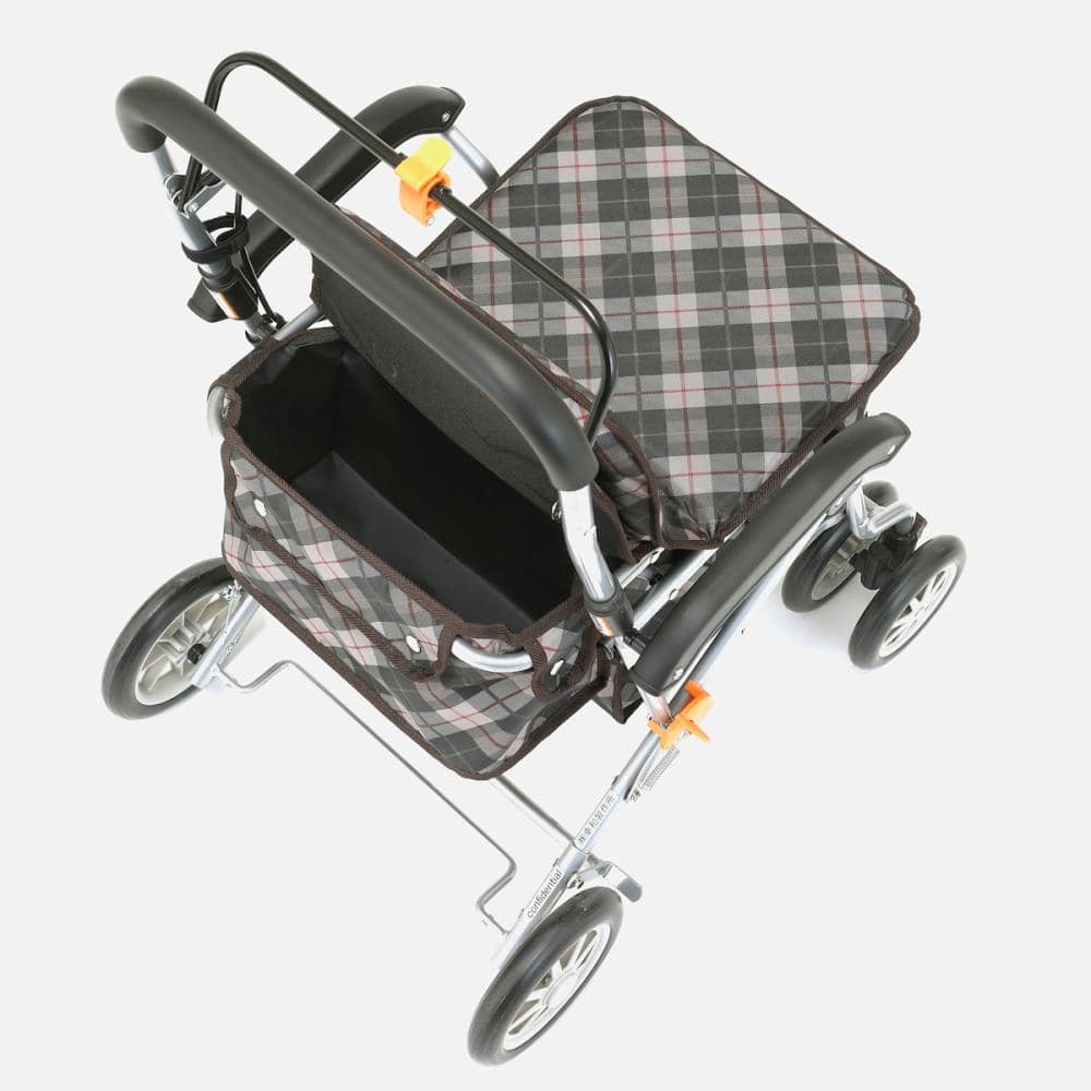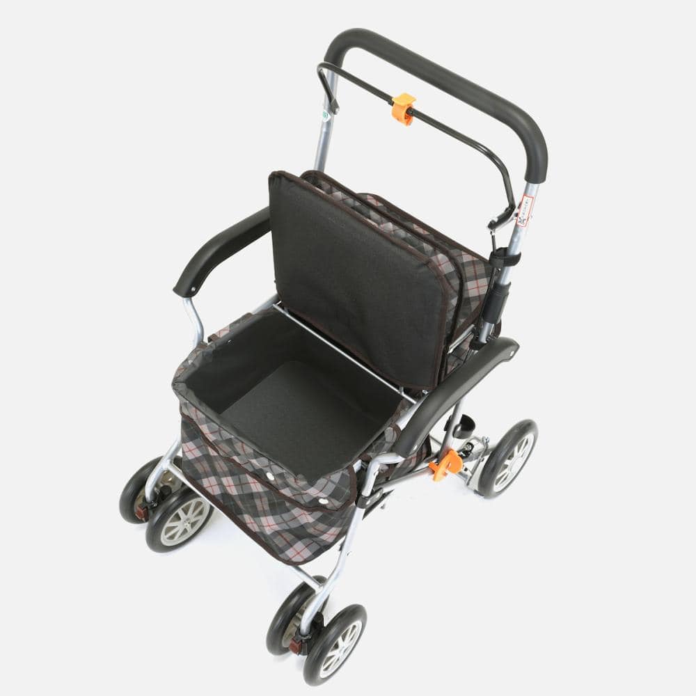 (4)座面を使用する場合は、かならず駐車ブレーキが左右両輪にかかっていることを確認してから使用してください。(坂道や段差のある場所では使用しないでください。)